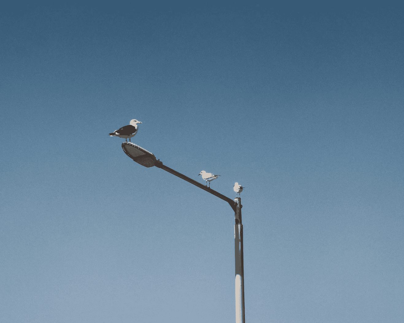 Just clean blue, stretched flat, with three birds claiming the streetlight as it belonged to them. No movement for a while. No drama in the air.