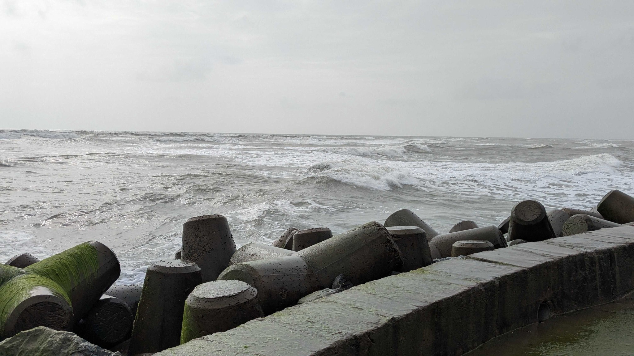 Waves kept hitting the concrete blocks again and again, steady, almost mechanical. I stood there longer than I meant to, not really chasing a thought.